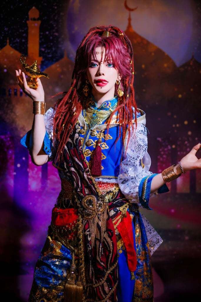 もにょ(B):ランプの魔神です。ただ、ランプから飛び出してくるところを間違えた魔神で、普通だったらランプの先っぽから出てくるはずなんですけど、衣装のズボンがランプになっているので、蓋の方から間違えて飛び出してきてしまったかたちになります(笑)。