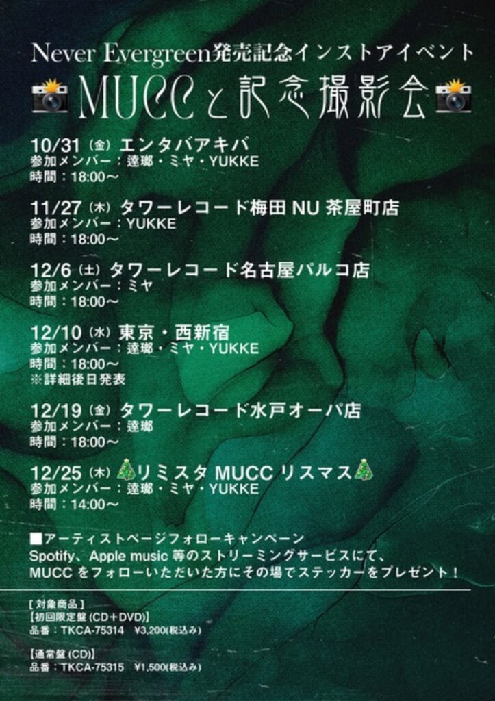 なお、『MUCC「Never Evergreen」発売記念インストアイベント』の詳細内容も発表となった。